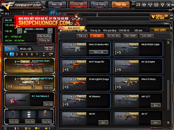 + 16Vip: Gun víp + 3z Iron +M4a1 Trans + Ngọc trinh