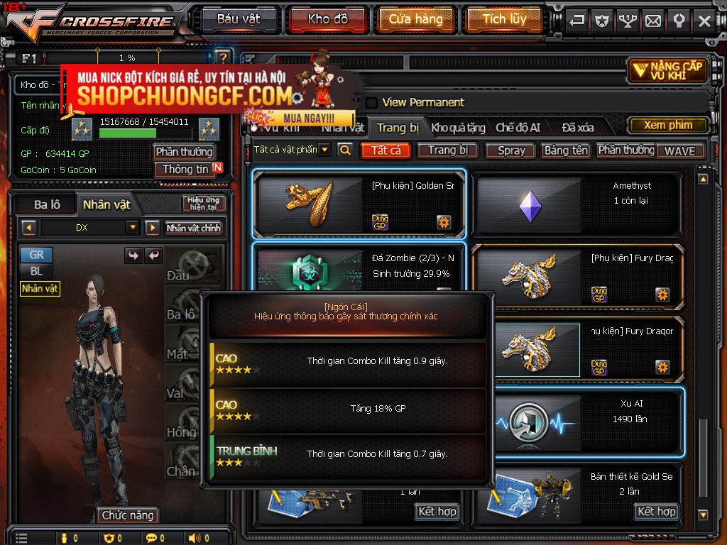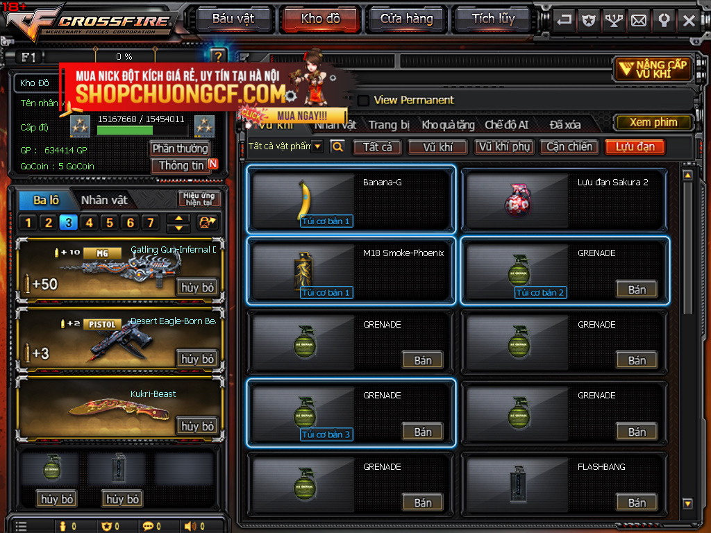 + 17Vip:K98 Blue + Gun víp + Awm víp + 3z Víp + M4a1 Trans + Ngọc trinh