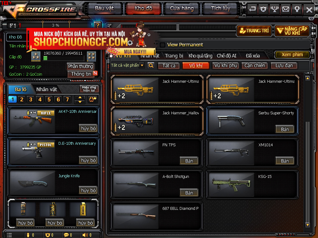+ 18Víp: Full 10th + Set 3z Royal + 3z NB + 3z Vip + Ngọc trinh