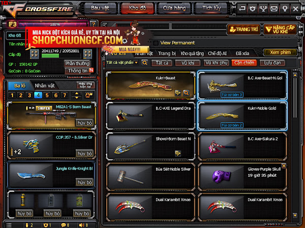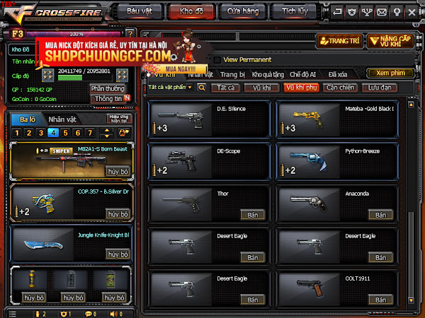 + 3Víp: K98 + 3z Iron NB + 3z Vip + Ngọc trinh