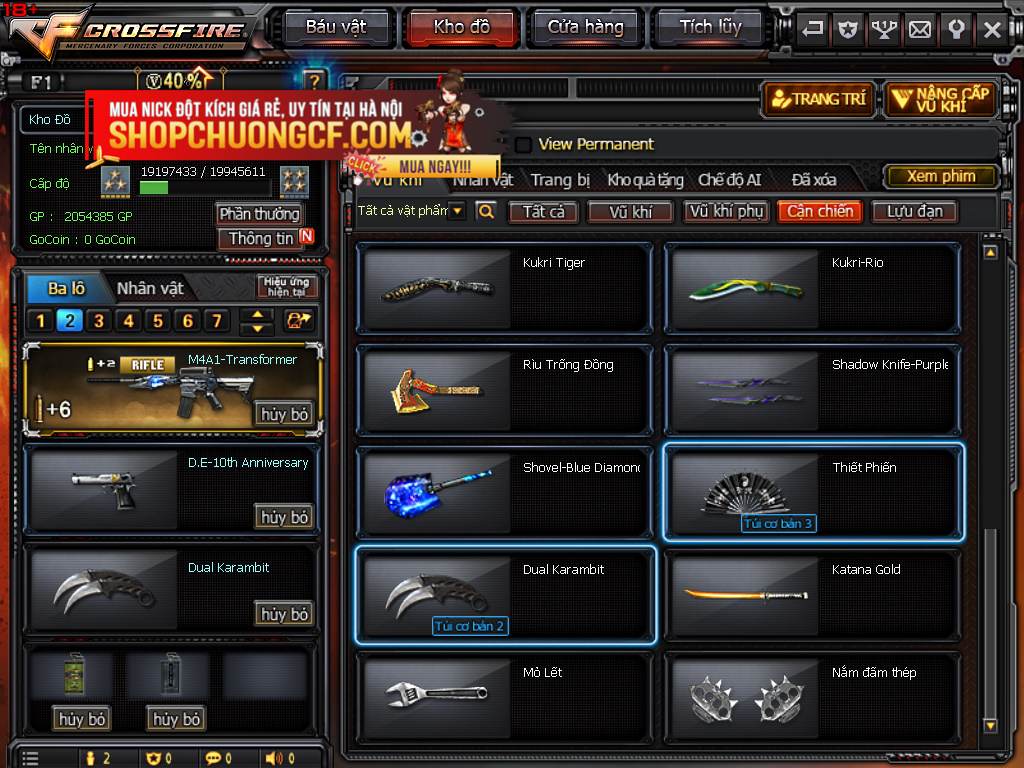 + 9Víp: X5 Tsv víp + M4a1 Trans + 3z Chaos + Ngọc trinh