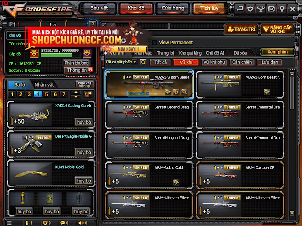 + 33Víp: Ak 10th + 3z víp + K98 + M4a1 TRans + Ngọc trinh