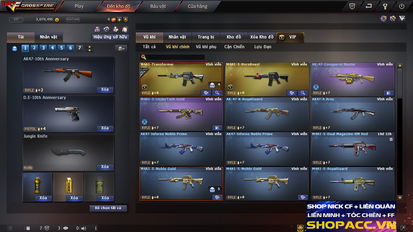 + 15Víp: M4a1 Trans + 3z Iron Víp + 3z BB + M4a1 BB + Full 10th + Ngọc Trinh + DX