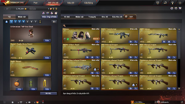 + 23Víp: TMP Búp Bê + TMP Mắt Quỷ + X9 TSV + Gun Vip